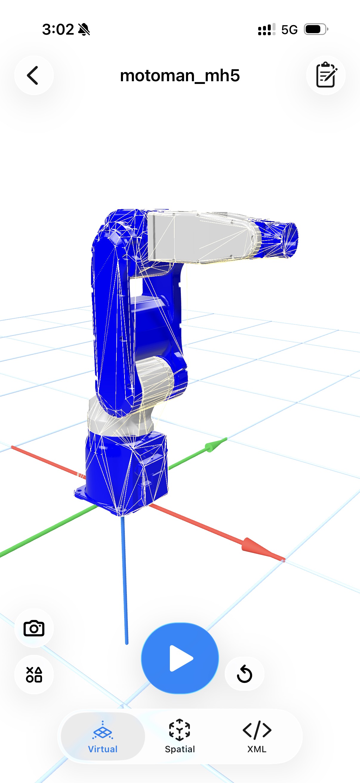 3D virtual view of a commercial robot arm with collision surfaces and kinematic links highlighted