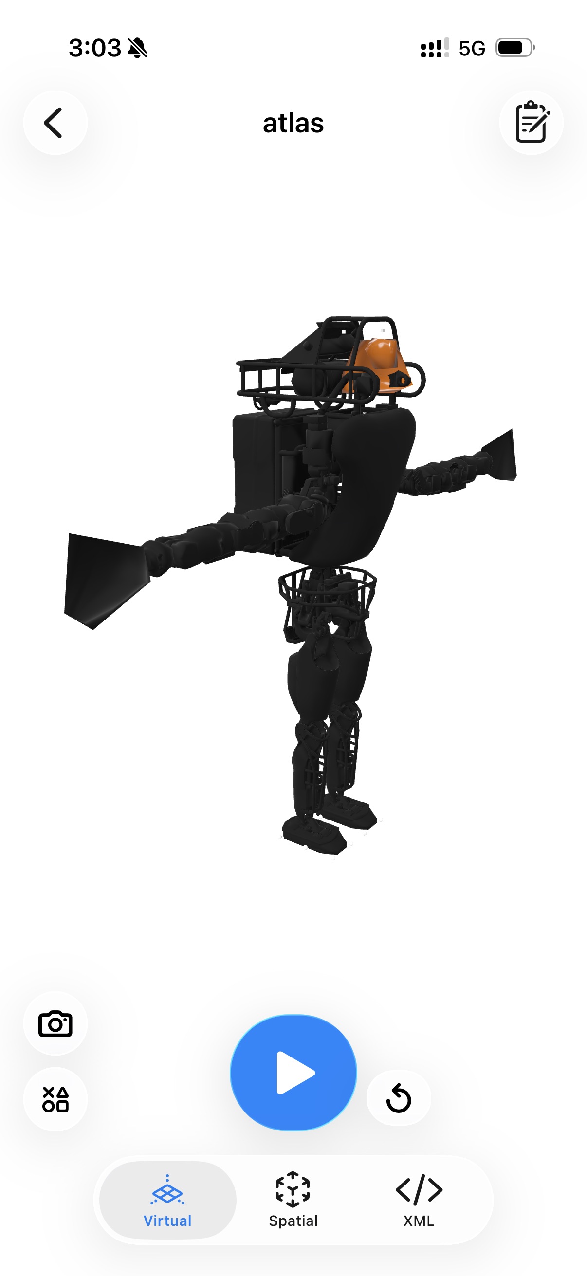 Boston Dynamics ATLAS robot model rendered in a high-fidelity 3D mobile physics simulator